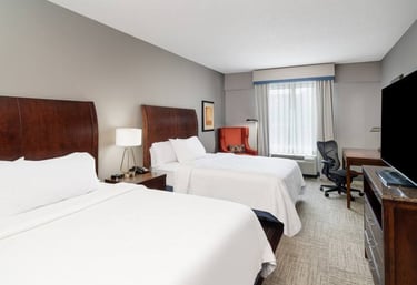 Comfortable room with two queen beds with modern amenities, ideal for family members traveling from across the country to join the reunion festivities.